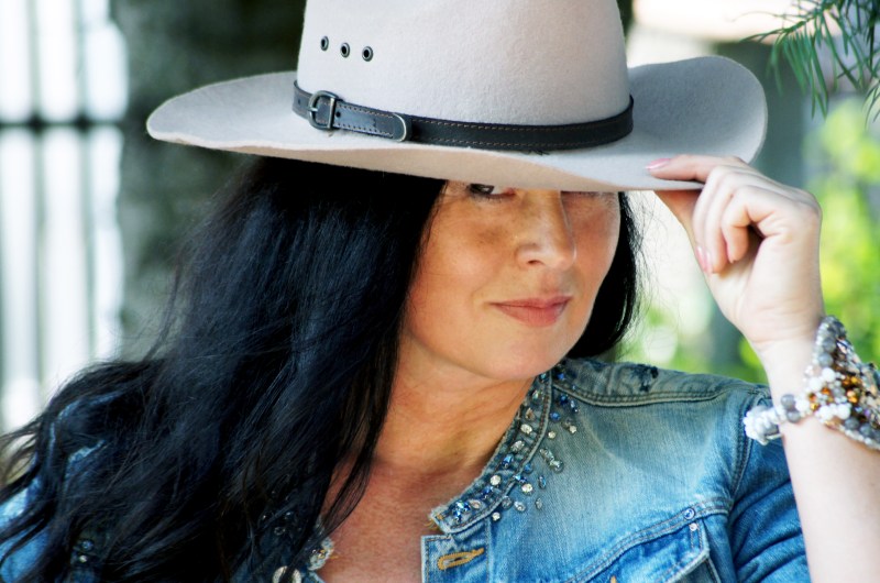Mam dziś na sobie kurtkę jeansową, wzorowaną na kultowej, marki Lee. Jest ozdobiona haftem i kryształkami , nie przypomina typowej kurtki kowbojskiej, a raczej kostium estradowy Dolly Parton. Aby dodać więcej blasku, a nadal pozostać w stylu westernowym, dobrałam buty, które do złudzenia przypominają kowbojki, natomiast wykonana są z posrebrzanej, delikatnej skóry z wytłaczanym wężowym wzorem. Kowbojki, (szczególnie w takim wydaniu) to teraz najmodniejszy element stroju wieczorowego. Hipisi zestawiali je z sukienkami boho, dlatego dziś włożyłam taką właśnie sukienkę. Z dodatków wybrałam bransoletę i filcowy kapelusz.