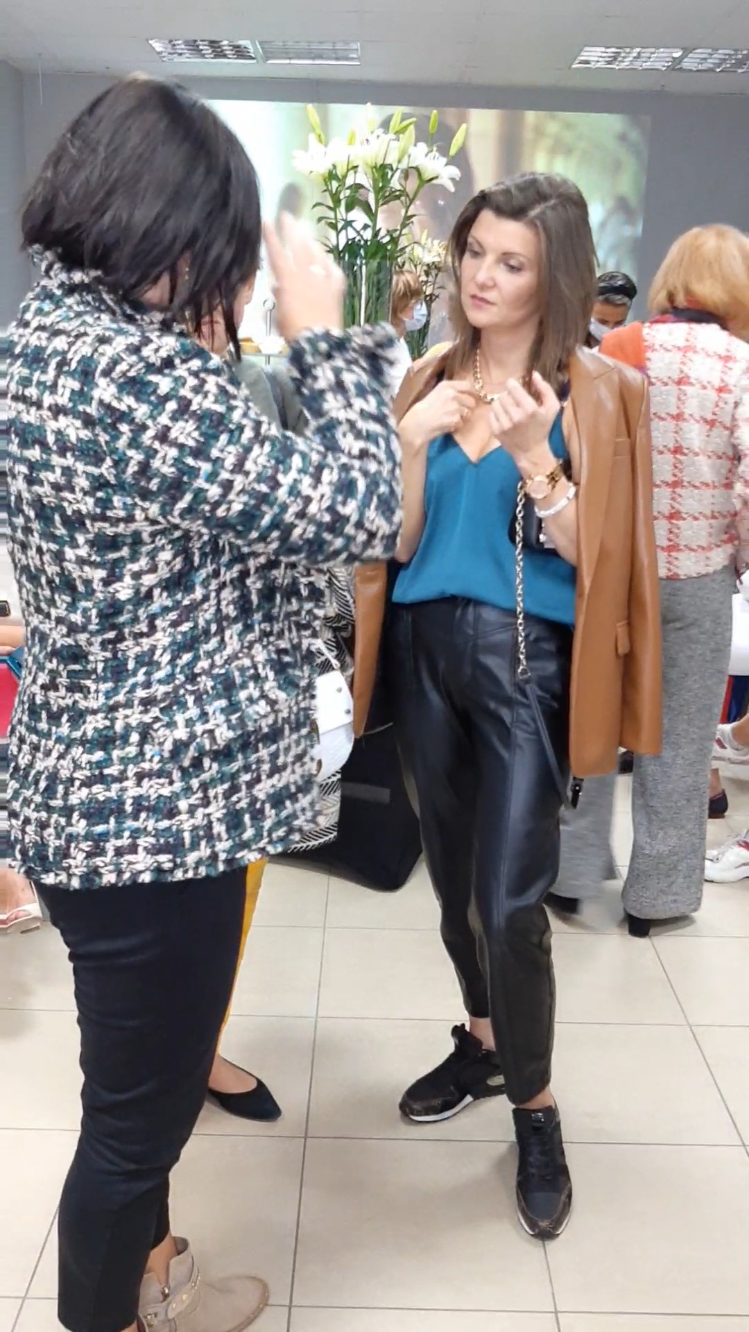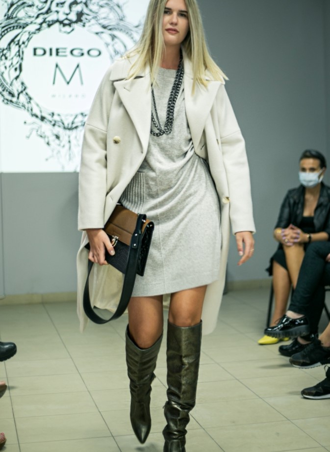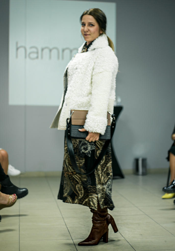 Zgodnie z oczekiwaniami pojawiły się ciepłe i praktyczne dzianiny Oui i LaurenVidal oraz wełniane płaszcze od inAVATI. Dominowały szare, czarne, beżowe oraz bordowe i zielone looki, typowe dla tej pory roku oraz wzory florystyczne i kraty, zdobione biżuterią z łańcuchów i pereł. Nie zabrakło pięknie, pikowanych puchowych kurtek i płaszczy Diego M. Oczywiście kobiety najbardziej kochają buty i torebki. Kozaki, botki i klasyczne czółenka w najmodniejszych wzorach i kolorach marki Hammer to istny zawrót głowy. Kolekcję wzbogaciły nowoczesne, skórzane torby Goshico.