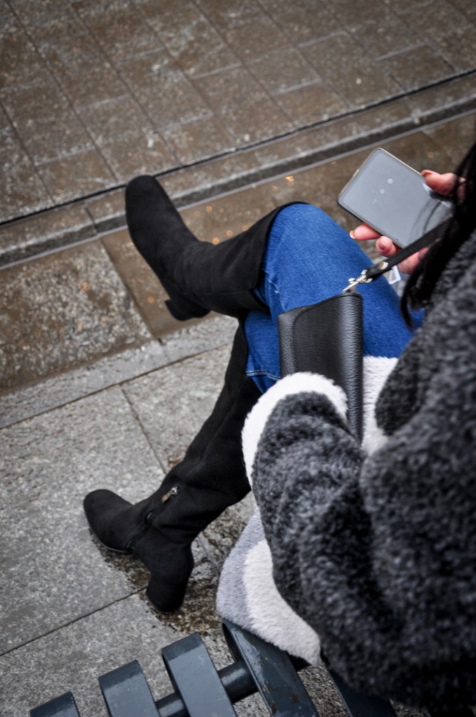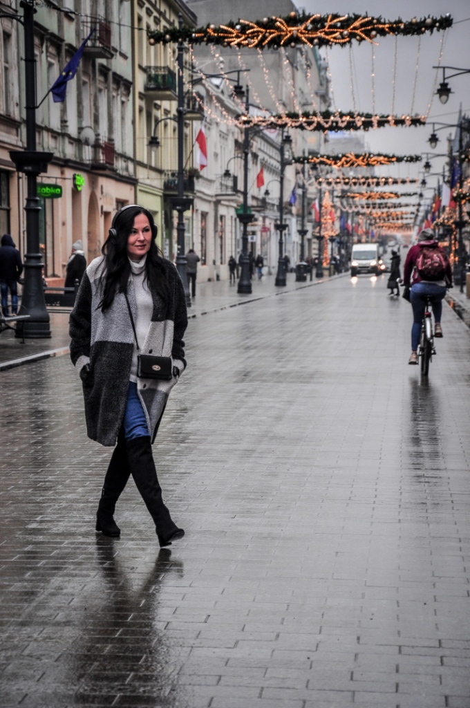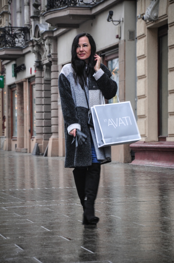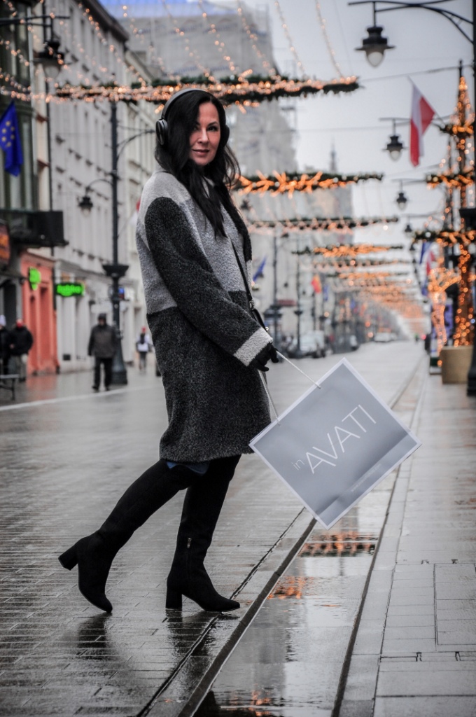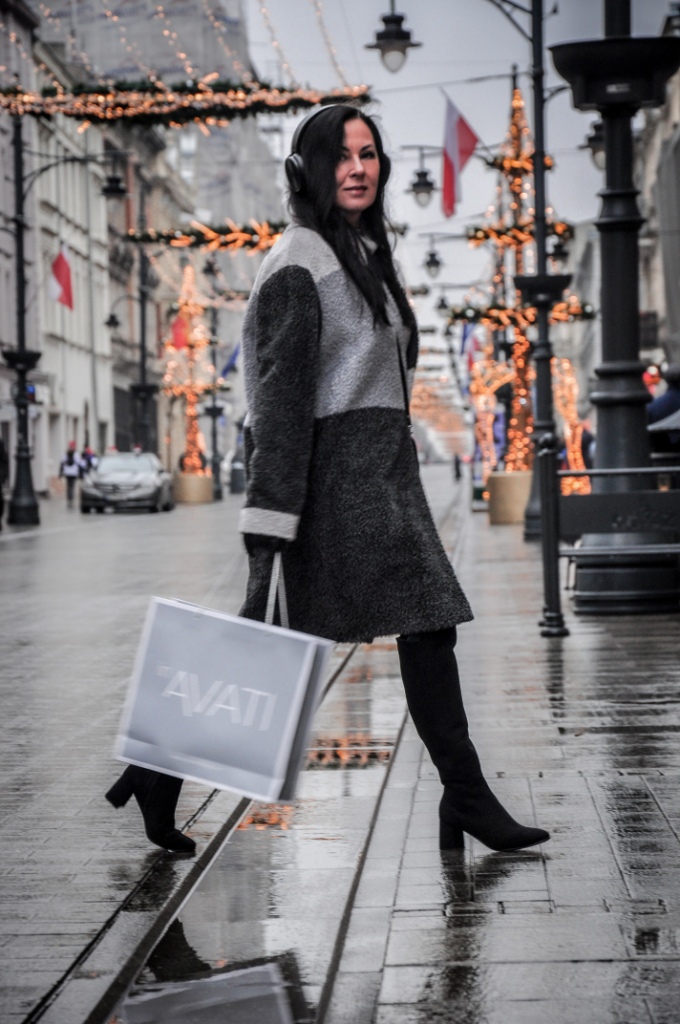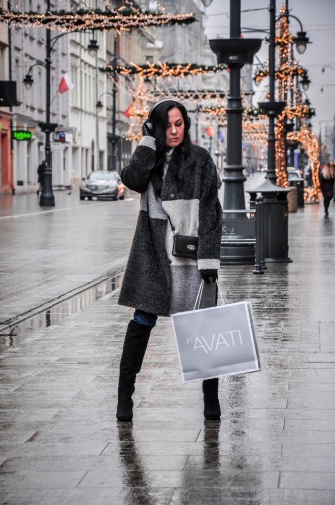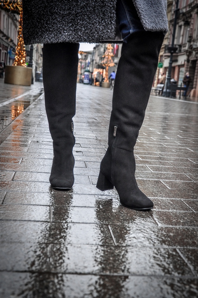 Za co kochamy szary kolor ? Bo to, że kochamy, nie ulega wątpliwości, wystarczy przejrzeć instagram. Bezpiecznie możemy go łączyć z każdym innym kolorem, a kraty w odcieniach szarości są od zawsze przebojem. Mój dzisiejszy look, to płaszcz z alpaki w trzech odcieniach szarości, szary golf i klasyczne jeansy. Dodatki w czerni zawsze wyglądają dobrze. Wybrałam więc czarne, zamszowe muszkieterki, skórzane rękawiczki i małą torebkę na ranię.