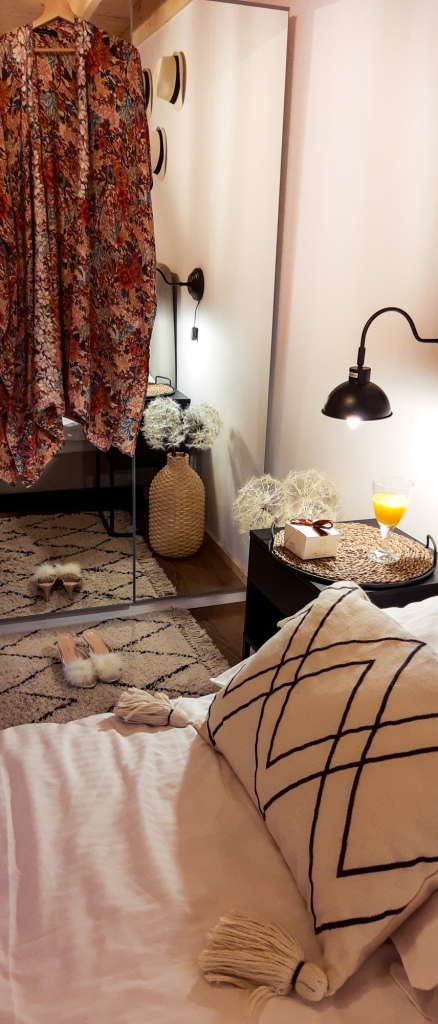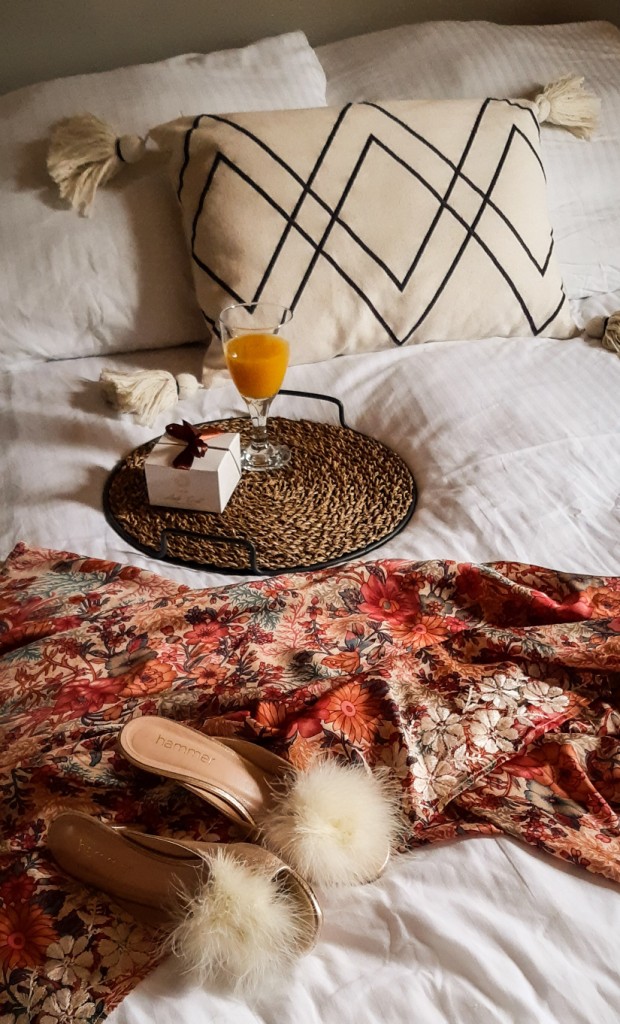 Mój przepis na dobry wypoczynek jest prosty, to rozpieszczanie ducha i ciała. Dobry wypoczynek gwarantują nam sen, ruch na świeżym powietrzu i zdrowe jedzenie. Jednak my, kobiety, potrzebujemy nieco więcej. Dziś chciałam Wam pokazać co zabieram ze sobą na weekendowy wyjazd. Po za wygodnymi dresami i kolorowymi sukienkami, zabrałam długie, jedwabne kimono w kwiatowy wzór z pięknymi haftami, oraz złote klapki na małej szpilce. W takim stroju poranna kawa smakuje znacznie lepiej.