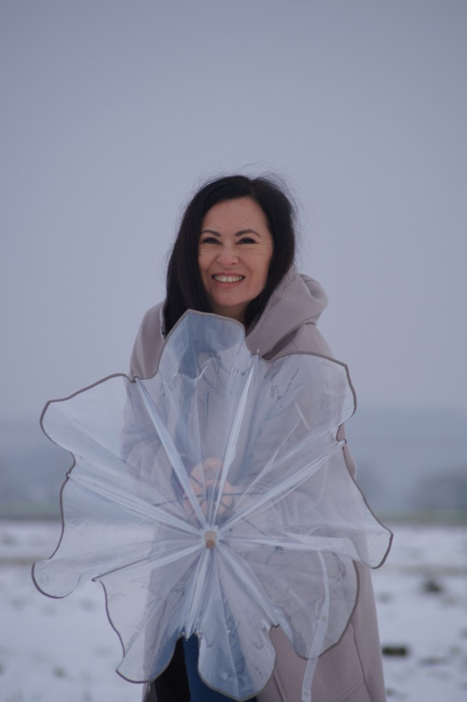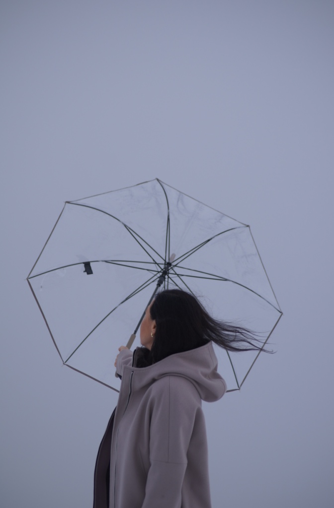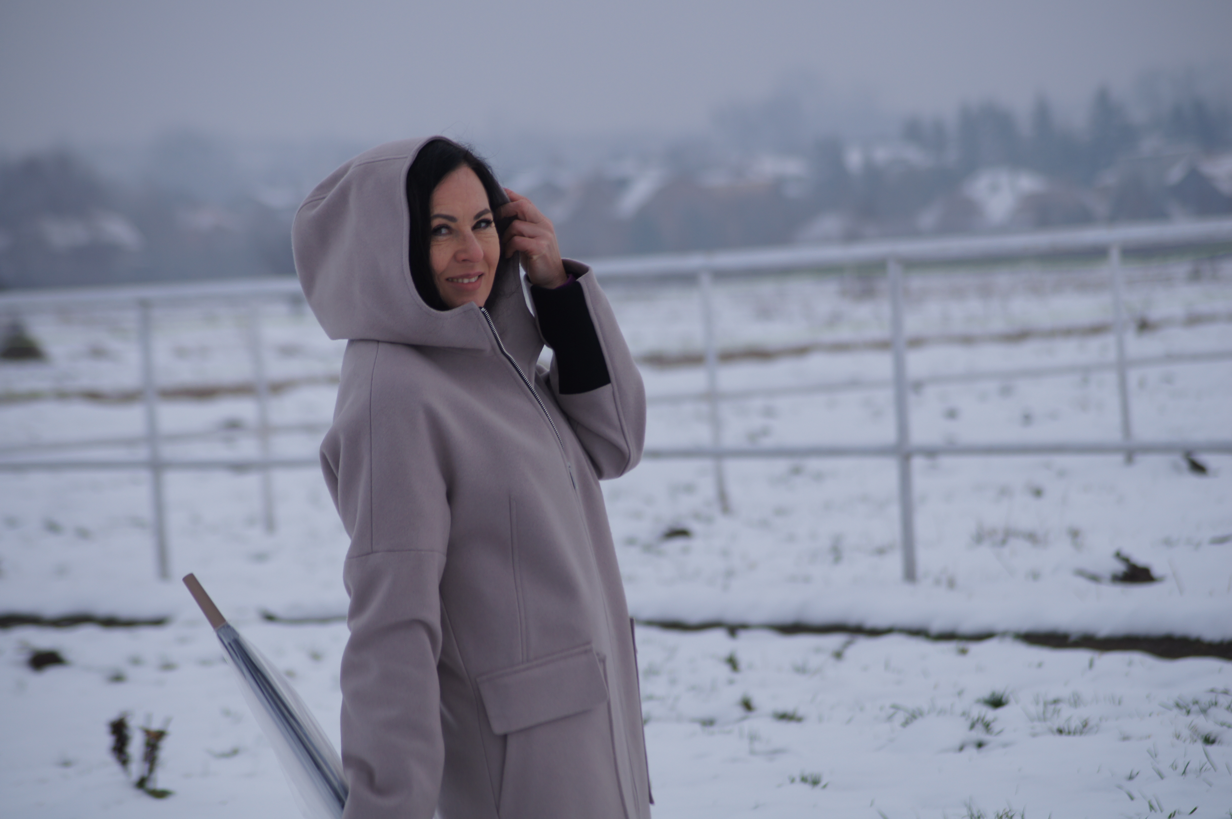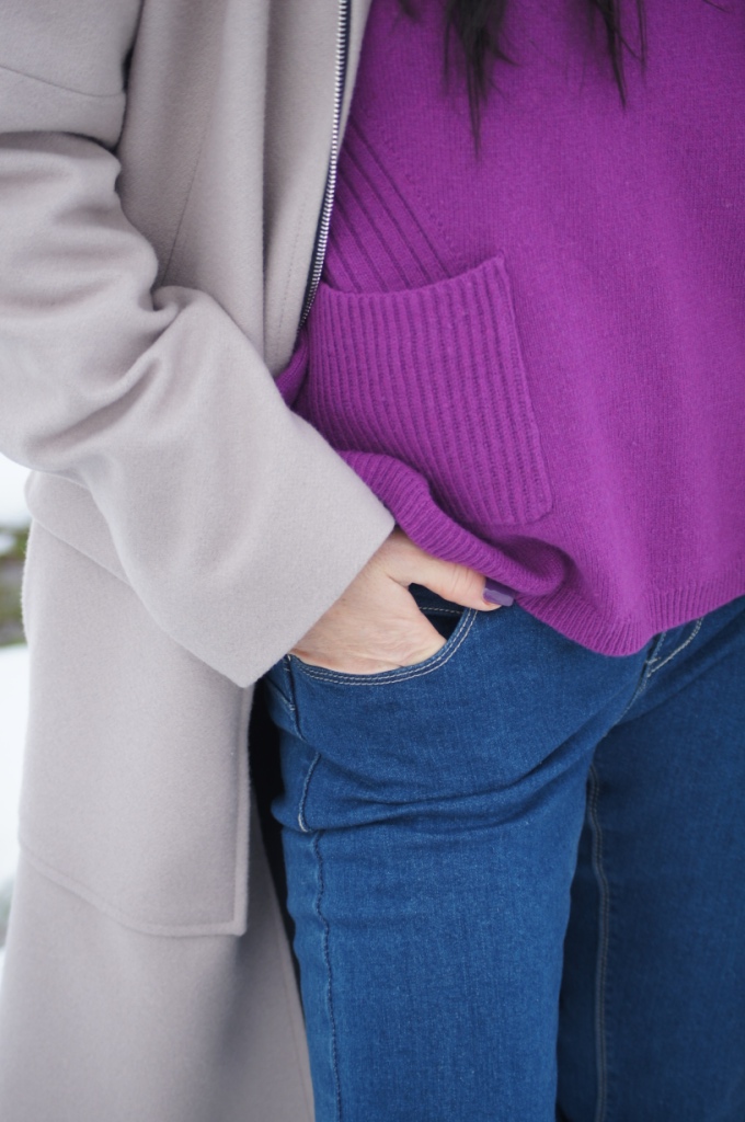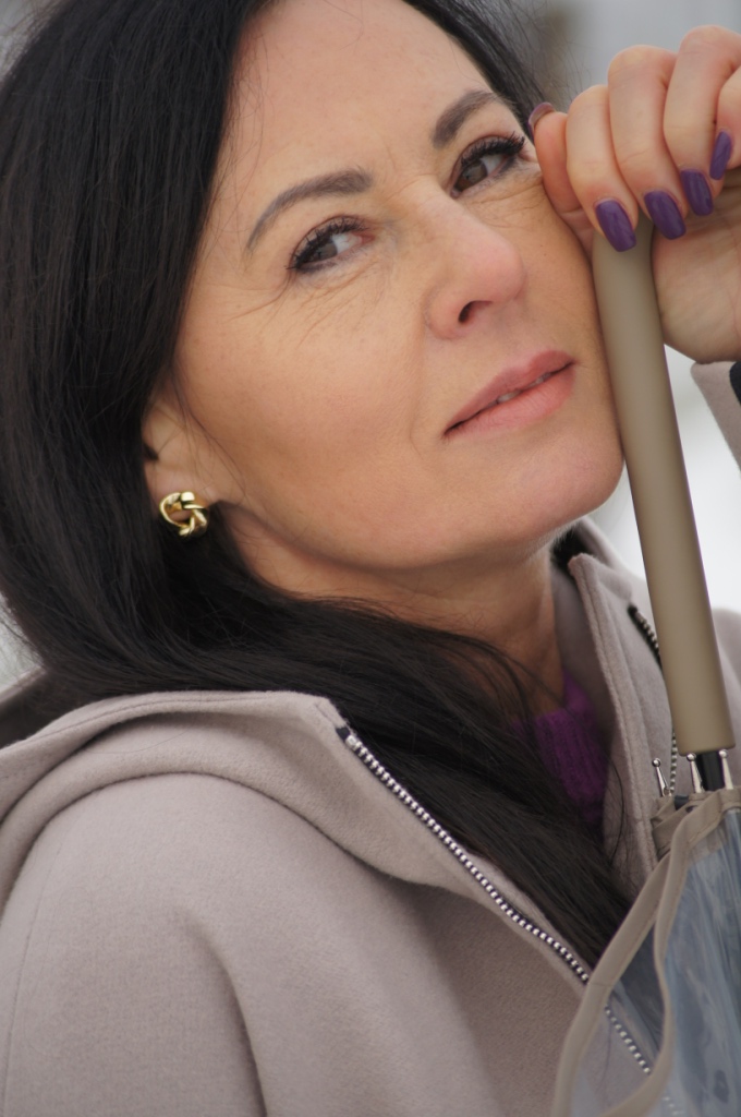 Wybierając weekendową stylizację z pewnością myślisz o wygodzie, ja myślę – sportowa elegancja, bo gdy podoba mi się look, to mimo niesprzyjającej aury jest jakoś piękniej. Mówi się, że nie ma złej pogody, jeśli jesteśmy właściwie ubrani. Wybrałam więc kalosze i parasol, który pozwala podziwiać widoki, jaensy i sweter w intensywnym kolorze. Zamiast kurtki, wełniany płaszcz o sportowym charakterze, zapinany na zamek błyskawiczny z kapturem i dużymi kieszeniami.