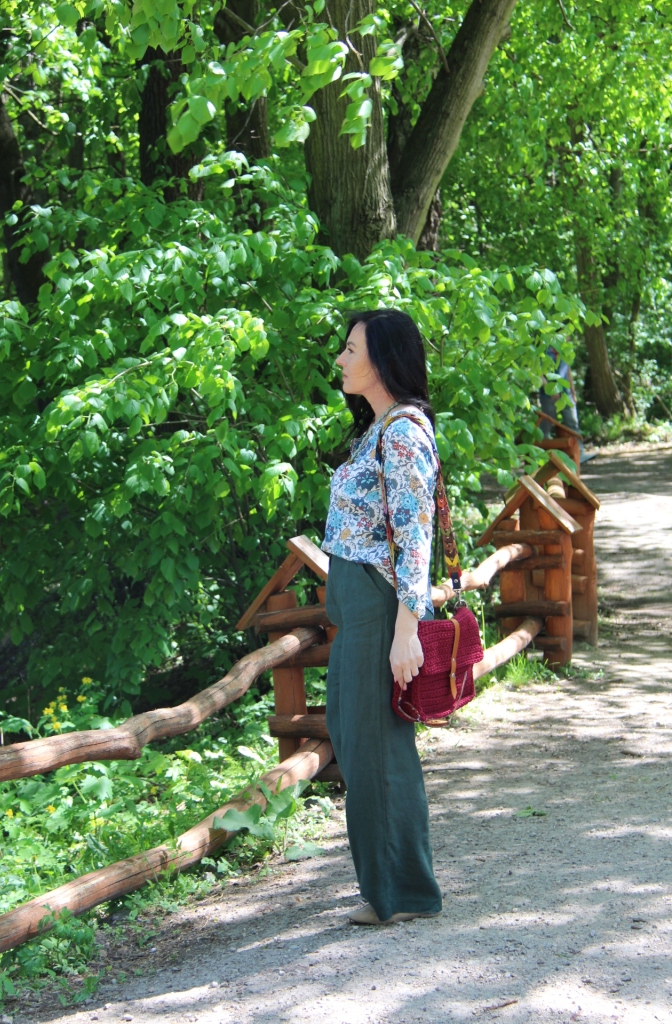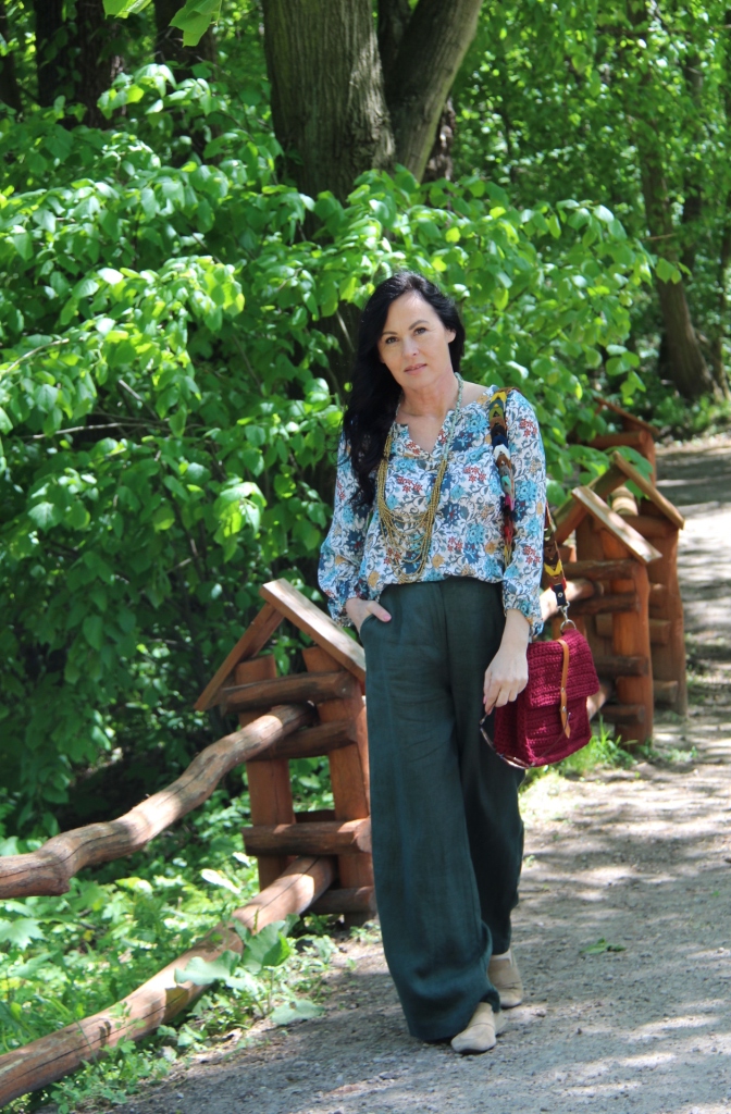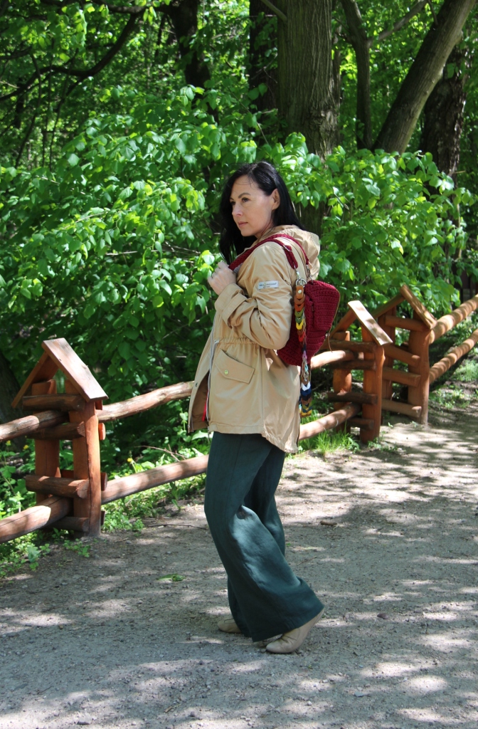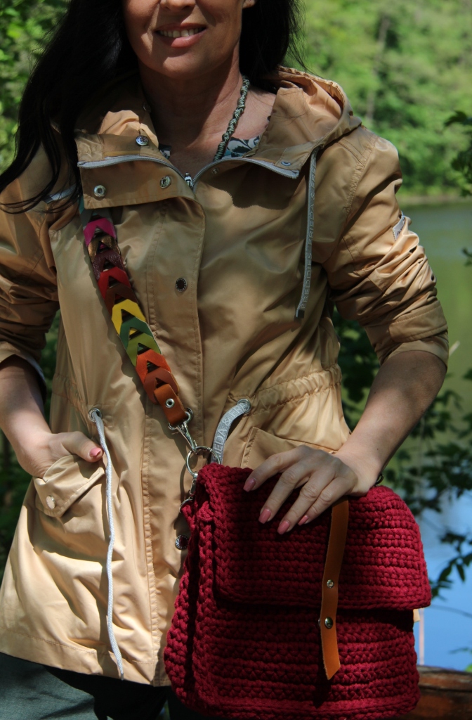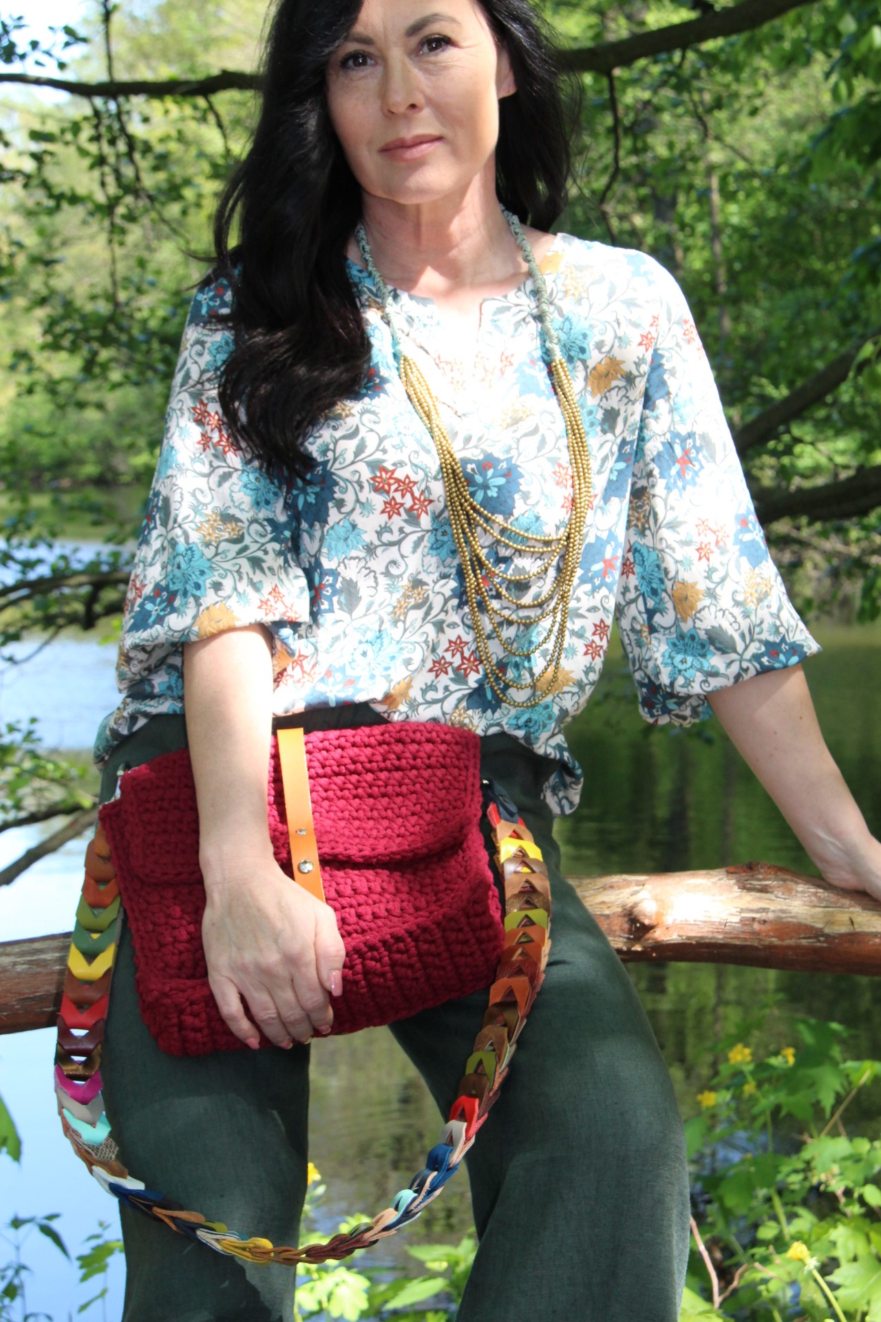 Plecak czy listonoszka ? Już nie muszę wybierać. Model o wdzięcznej nazwie ,,Jabłko” to nowość od Pleciuga, który może się zmieniać w zależności od potrzeb. Torba wykonana z bawełnianego sznurka, wzbogacona o skórzany, kolorowy pasek jest idealnym dodatkiem do letnich stylizacji. Zestawiłam ją z kolorową bluzką, lnianymi spodniami, sportową kurtką, oraz bardzo wygodnymi mokasynami ze skóry.