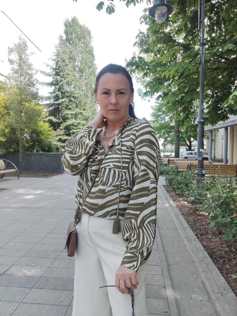 Bluzka – Lauren Vidal Spodnie i torebka – Oui Okulary – Vermari Biżuteria – Yvon.pl