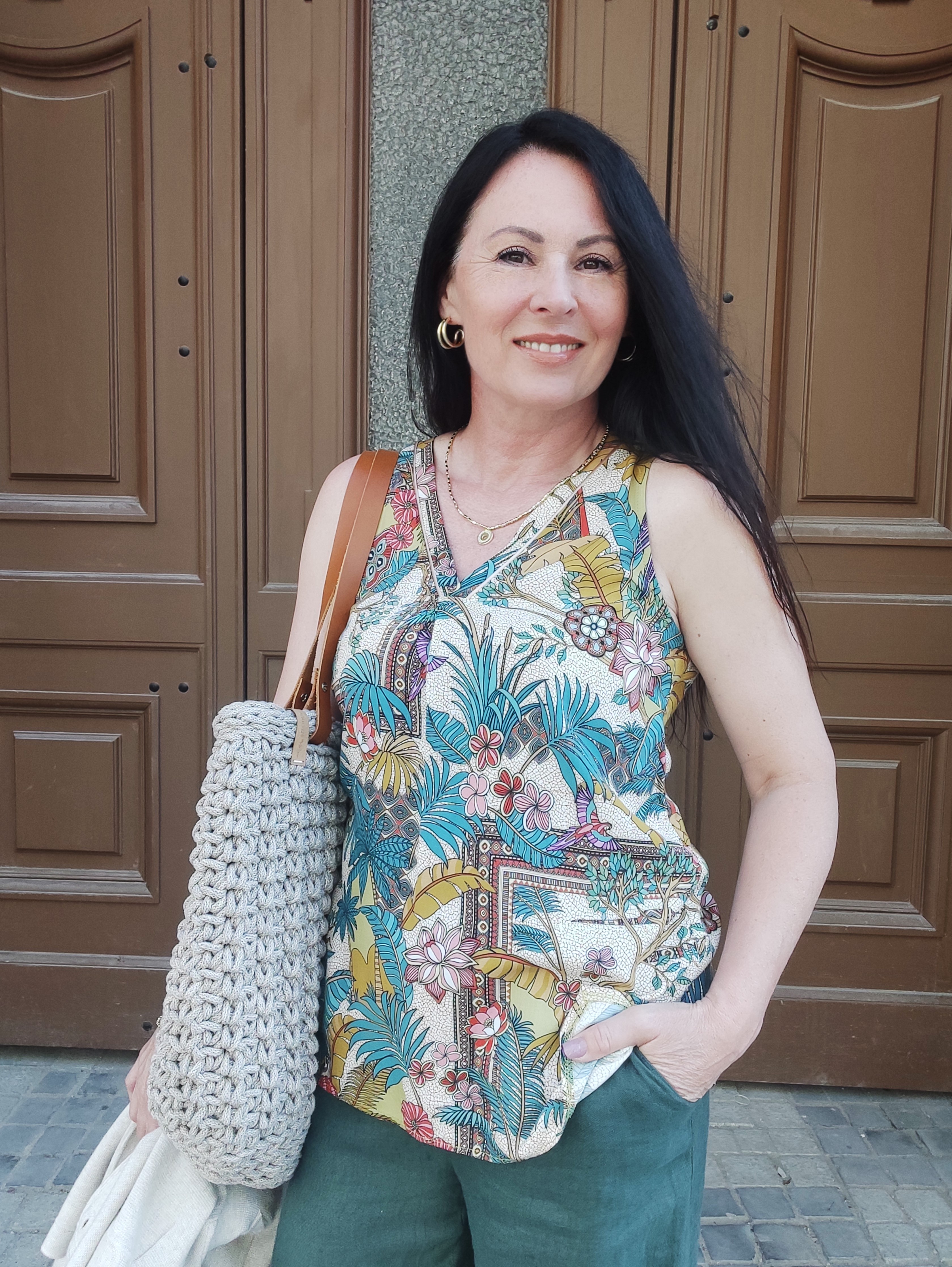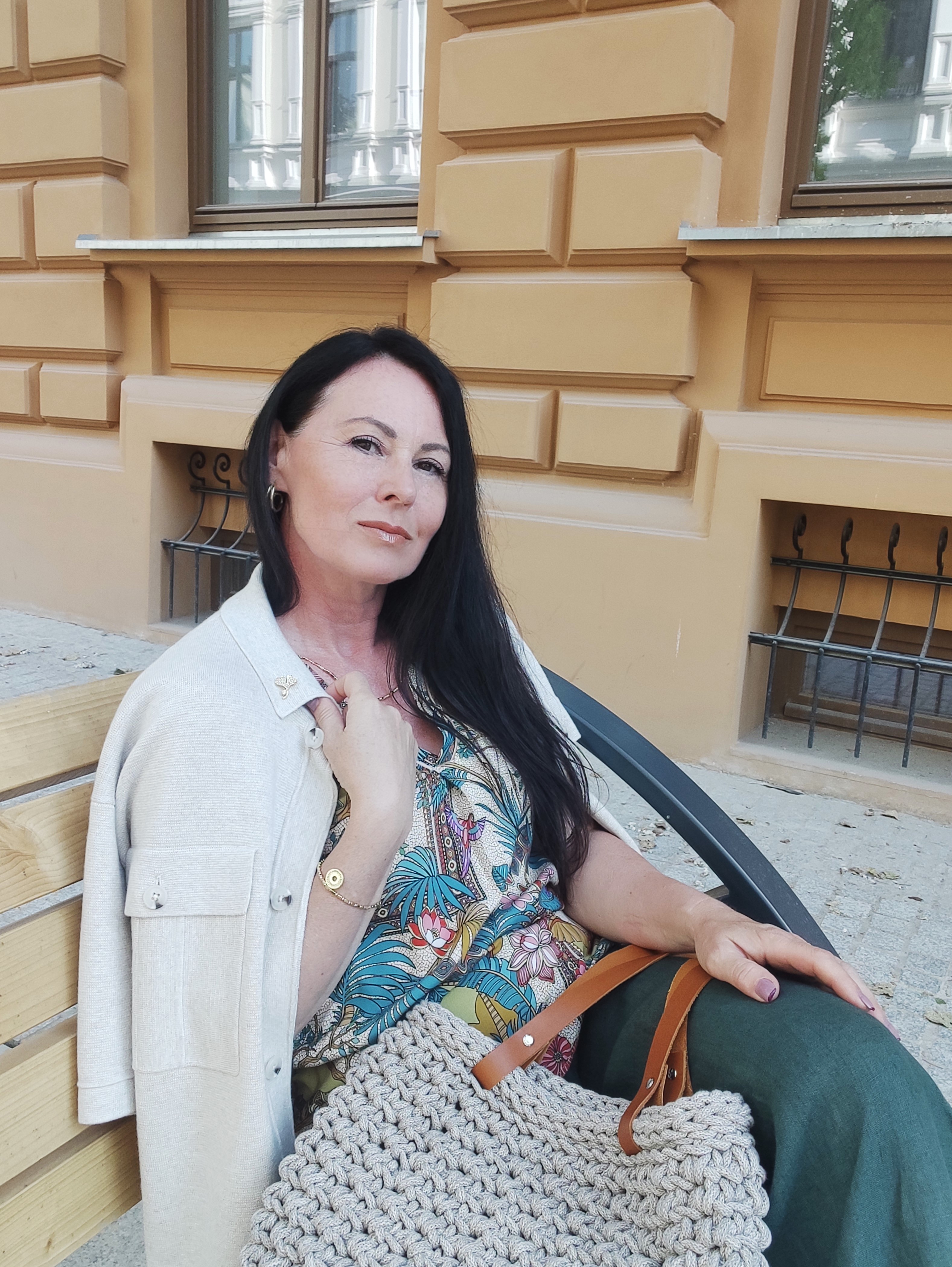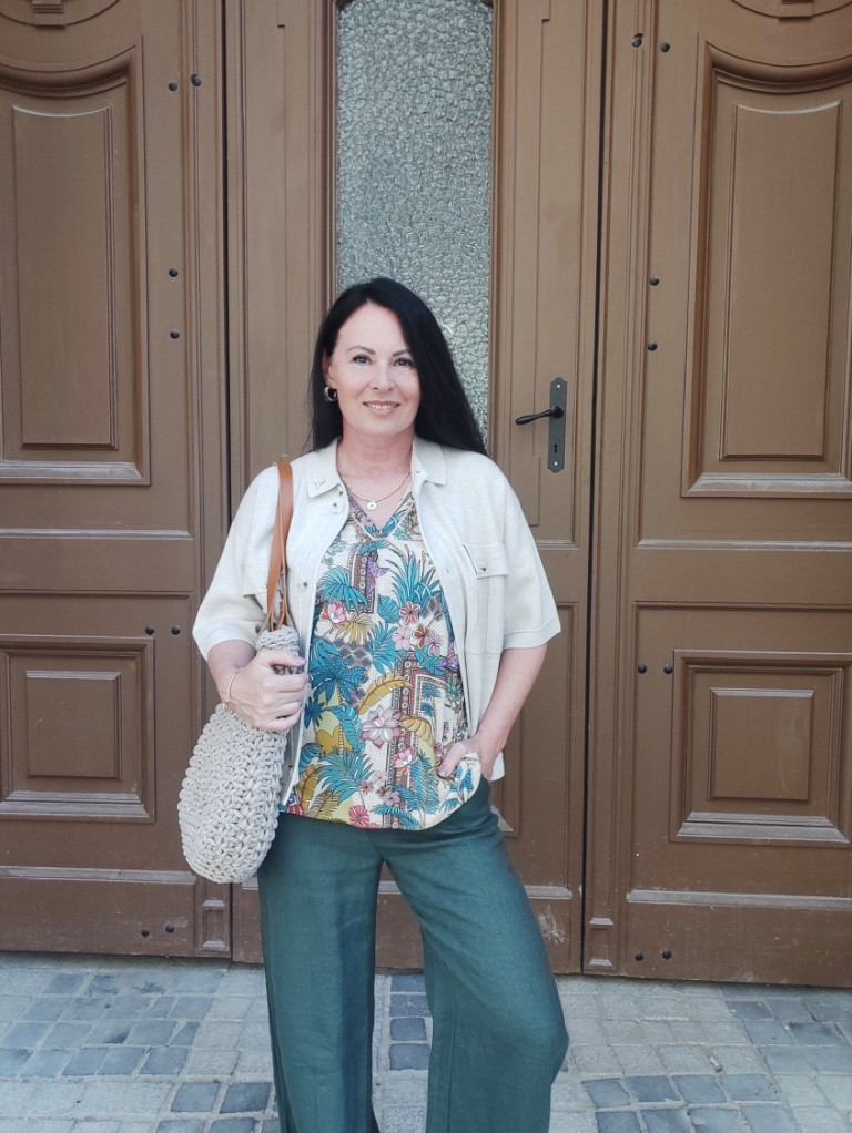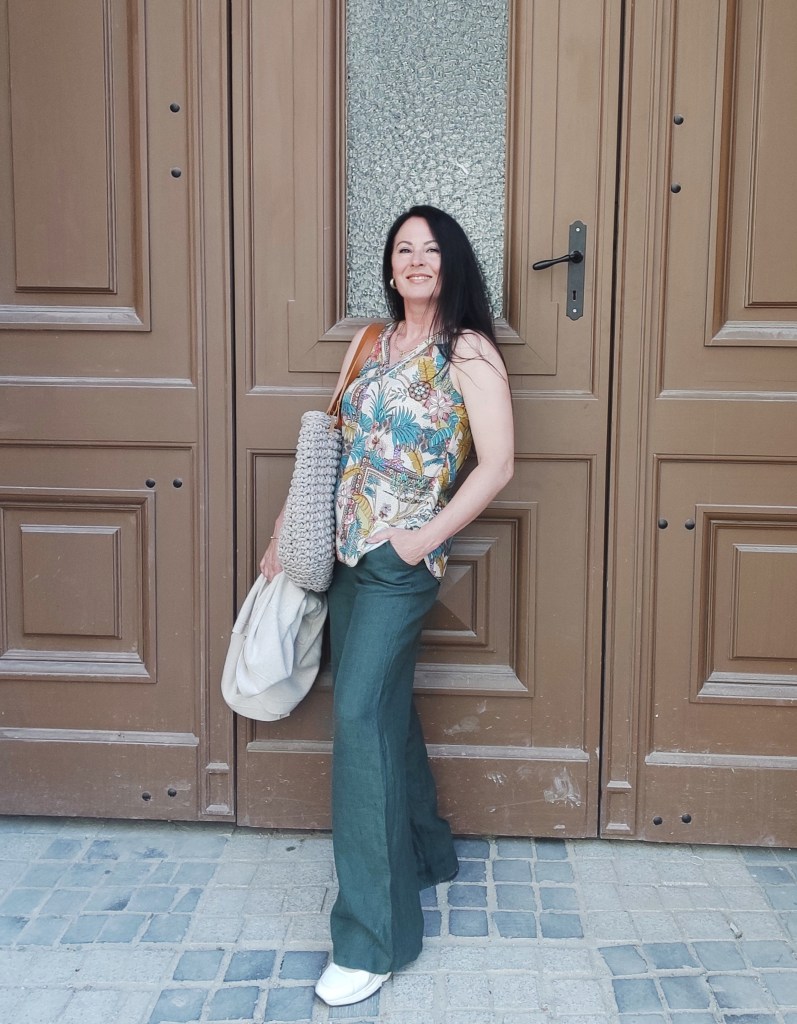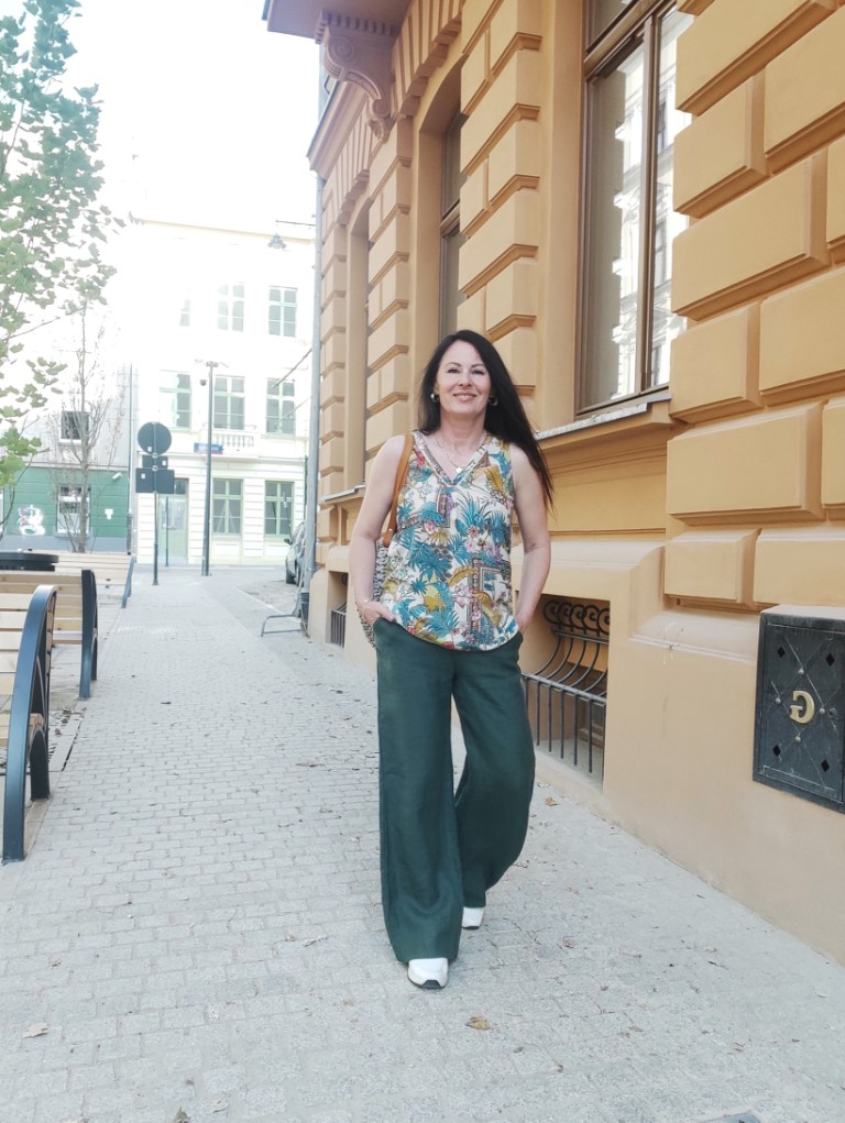 Naturalne materiały, delikatne kolory i swobodny fason, to przepis na letnią stylizację. Bez względu na to, czy jestem na urlopie, czy spędzam lato w mieście stawiam na wygodę. Dziś mam na sobie lniane spodnie, bluzkę bez rękawów w kolorowy, egzotyczny print i bawełniany żakiet w stylu safari. Torbę, wybrałam z ekologicznej bawełny na skórzanych paskach, mojej ulubionej, rękodzielniczej marki.