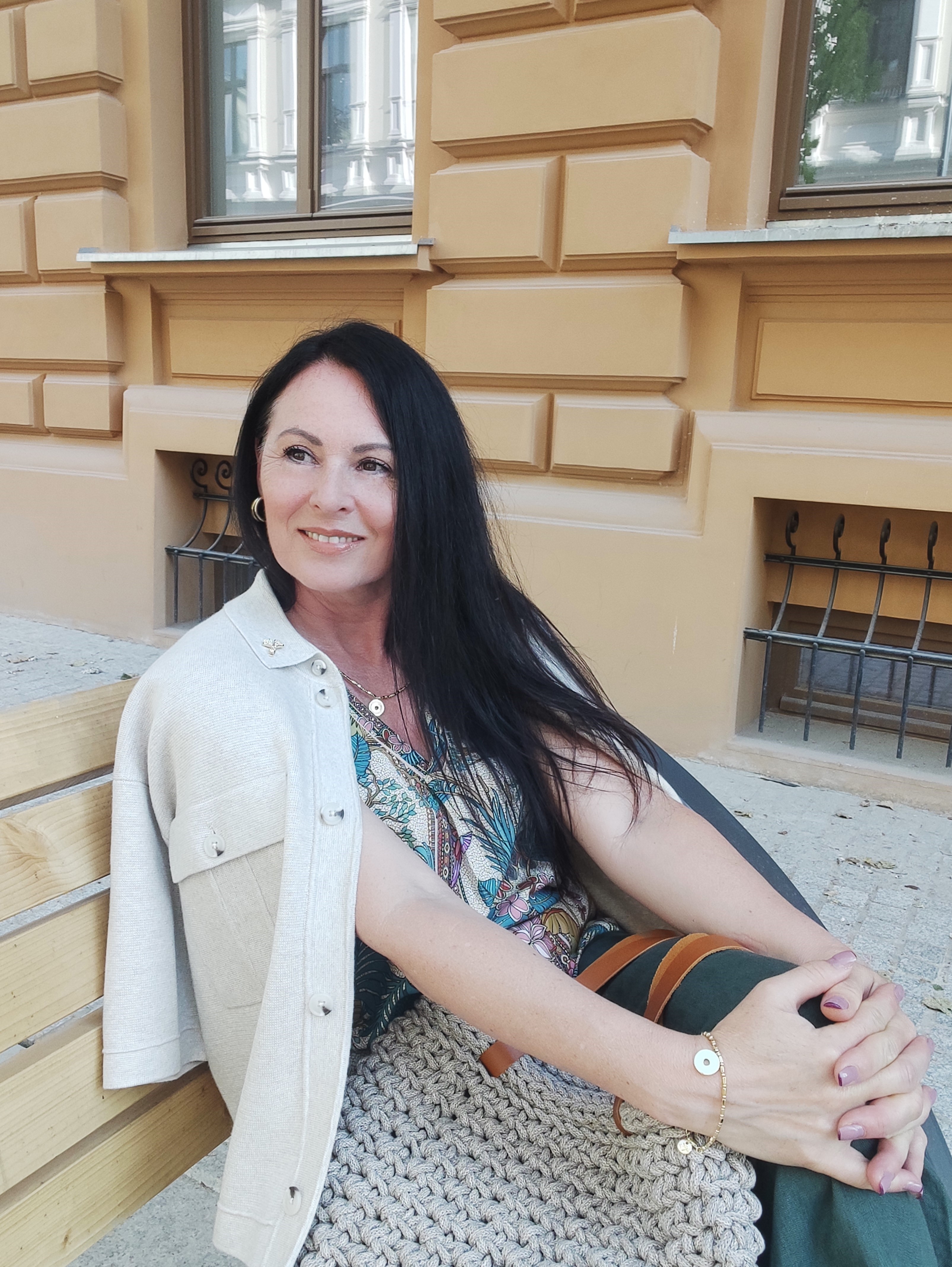 Sweter – Oui Bluzka – La Fee Maraoubutee Spodnie – Humility Torba – Pleciuga Okulary – Vermari Biżuteria – Yvon.pl Buty – GEOX