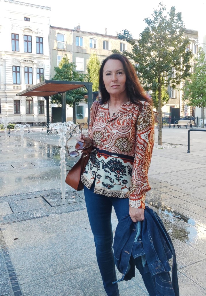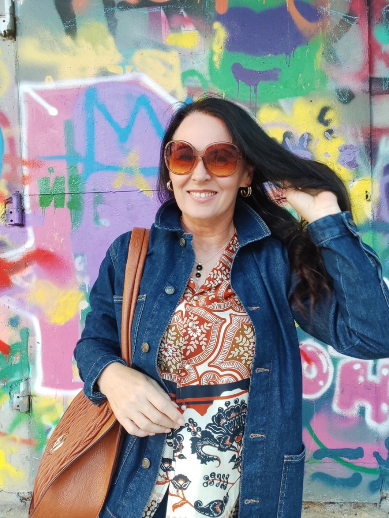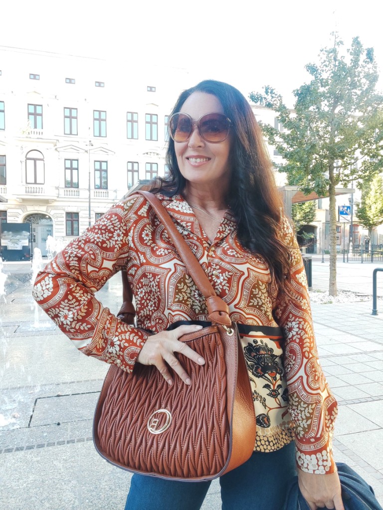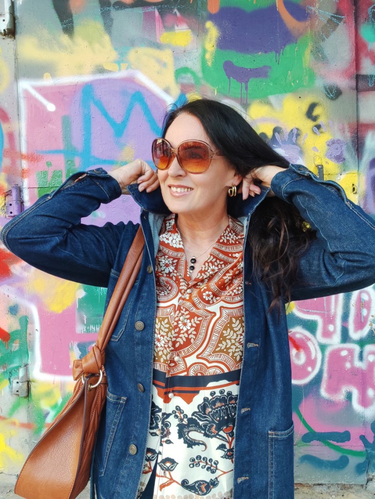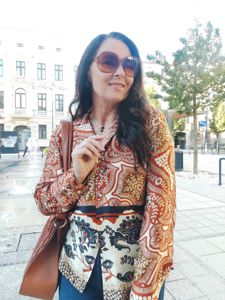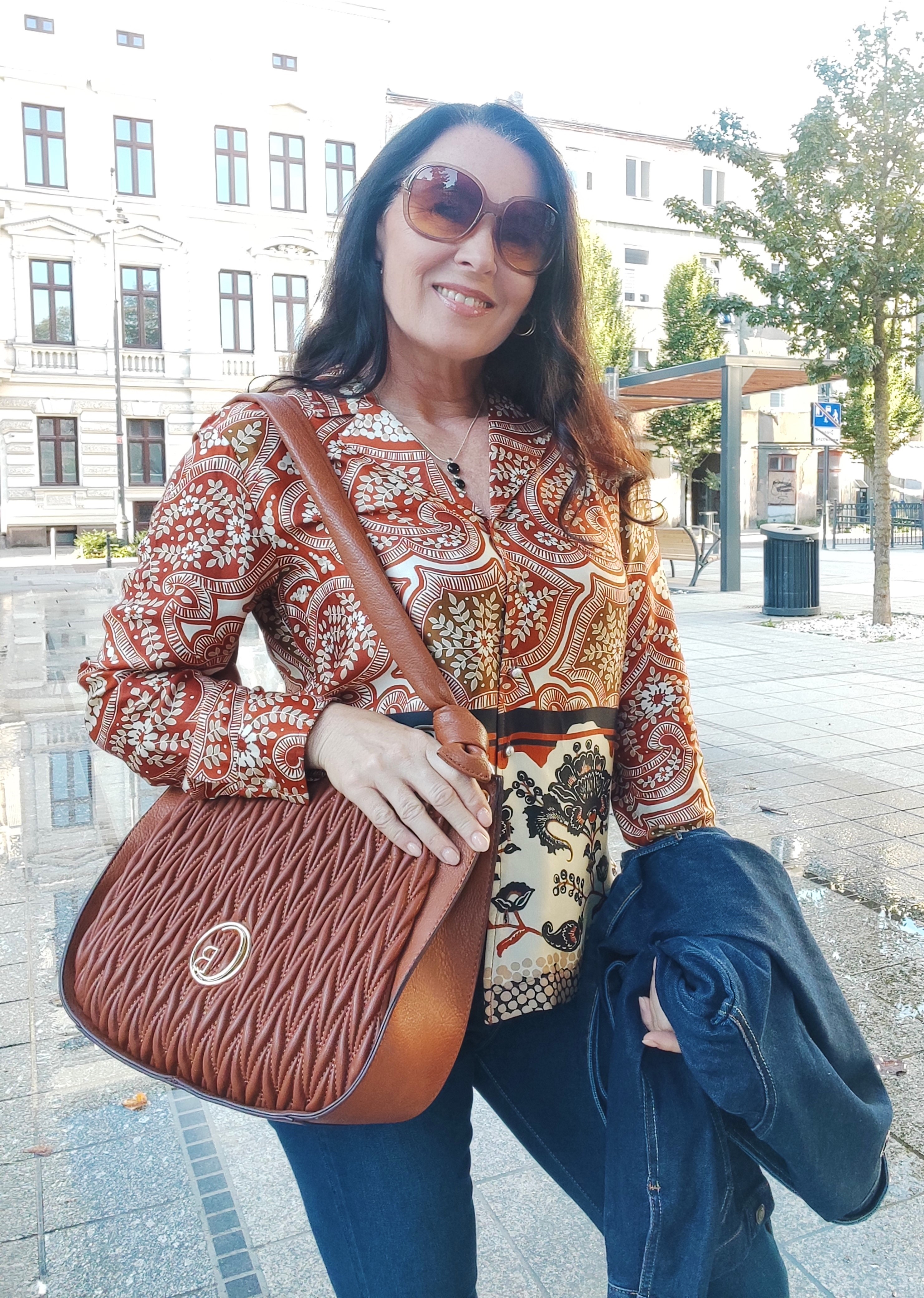 Jensowa kurtka z kolekcji La petite francais to mój wybór na ten sezon. Prosty fason z paskiem, naszytymi kieszeniami i małym kołnierzykiem. To model ponadczasowy i wygląda z jeansami tak samo świetnie jak z sukienką. Już niebawem będę wkładać do tego zestawu kozaki z wysoką cholewką. Dobrałam do niej spodnie i wzorzystą koszulę tej samej marki. Kolory koszuli są idealnym łącznikiem między jeansem a dodatkami.