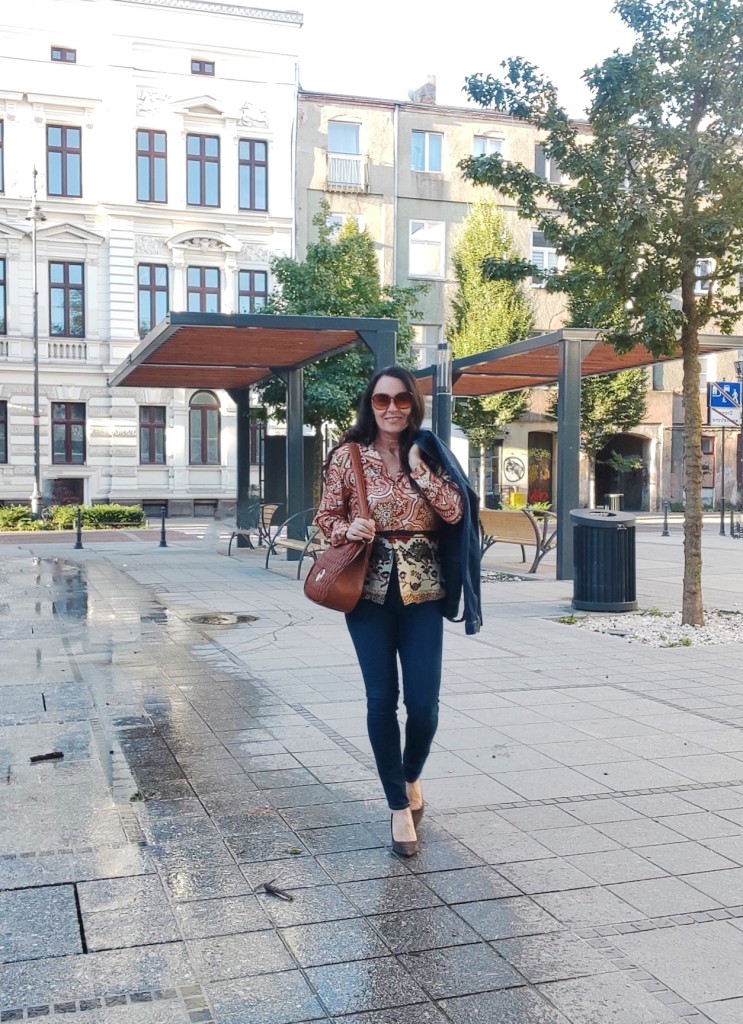 Kurtka, spodnie i koszula – La petite francaise Torba- caroline biss Buty – Hammer Biżuteria – Yvon.pl Okulary – H&M