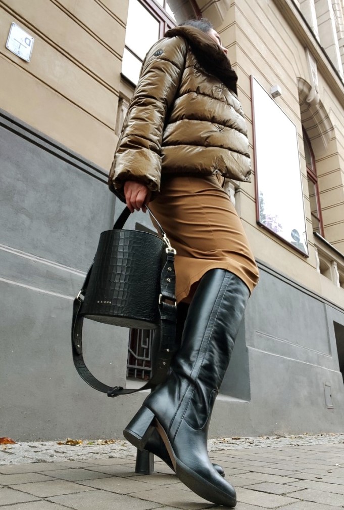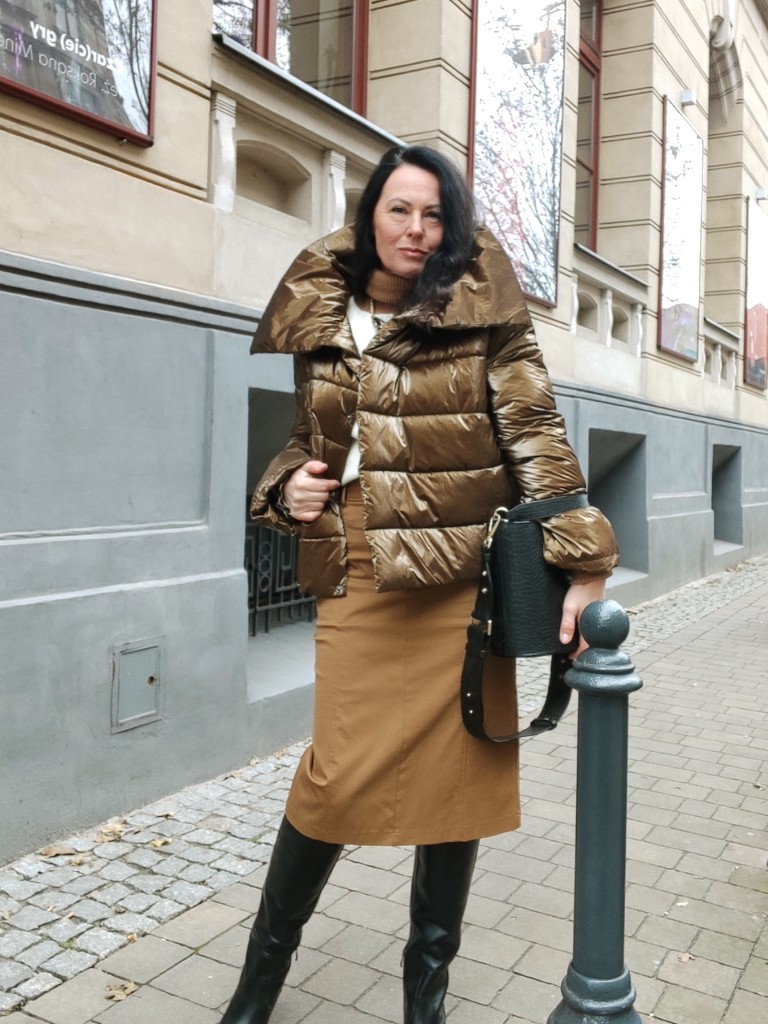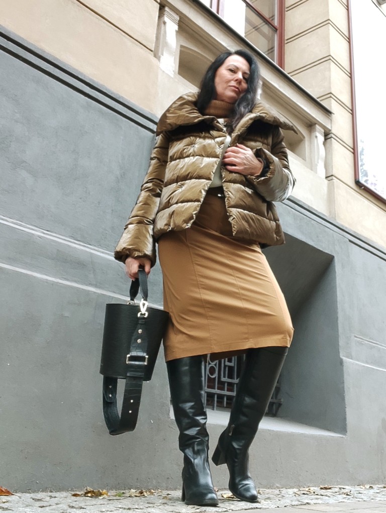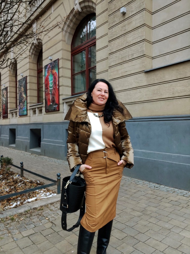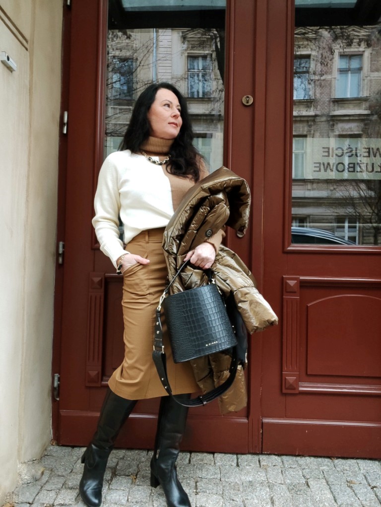 Kurtka i sweter – Artigy Spódnica – La Petite francaise Kozaki – Hammer Torba – Annie-m Biżuteria – Yvon.pl