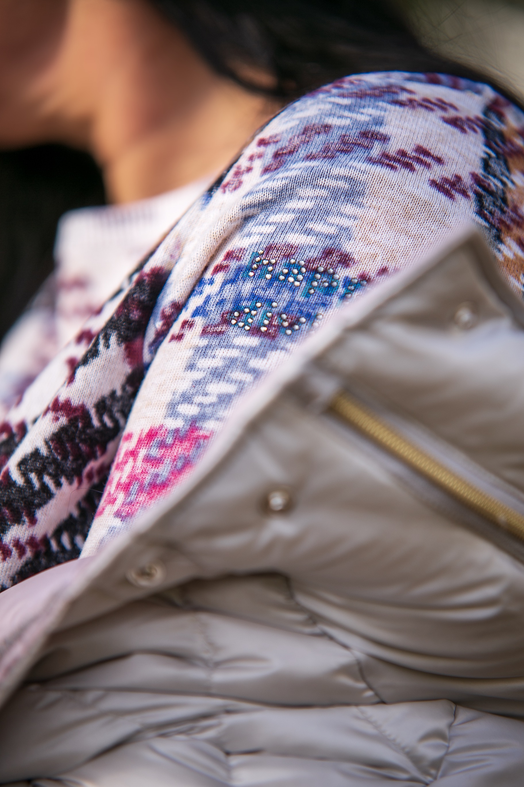 Puchowy, pikowany płaszczyk