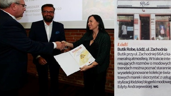 Edyta Andrzejewska- stylistka,blogerka, ultramaratończyk. Jakiś czas temu założyła mały sklep z odzieżą damską, który dzisiaj jest już rozpoznawalną marką na mapie modowej Łodzi. Butik Robe, to miejsce gdzie znajdziesz najnowsze kolekcje światowych marek podane w przystępny sposób i w kameralnej atmosferze. Ale co najważniejsze, spędzisz tu mile czas mając wrażenie, że przyszłaś do koleżanki na kawę, a nie do sklepu, w którym wywiera się nacisk na sprzedaż.
